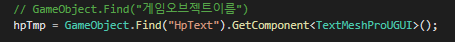 방식2. 계층창에서 게임오브젝트의 이름을 검색하여 호출