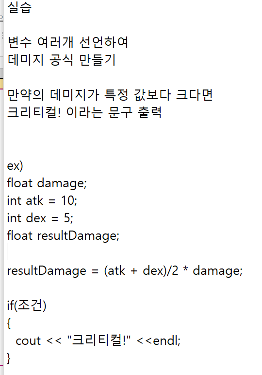 [C++] 조건문을 써서 데미지 공식을 만들어보자